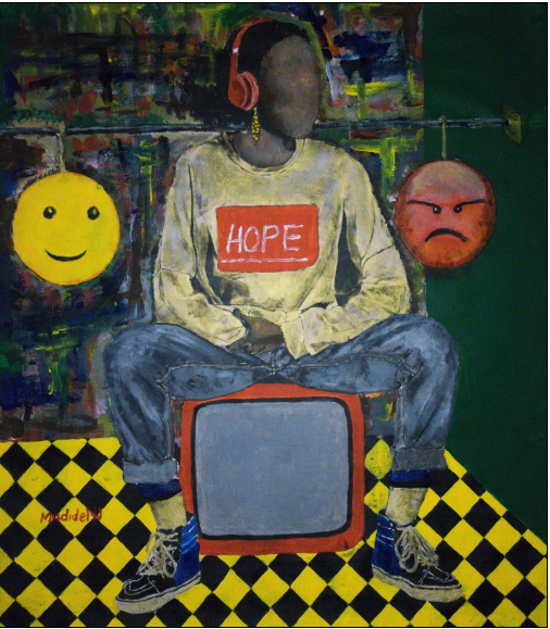 Wakaba Mutheki Savvy Sax In Street Scene Acrylic Painting 120 x 90cm