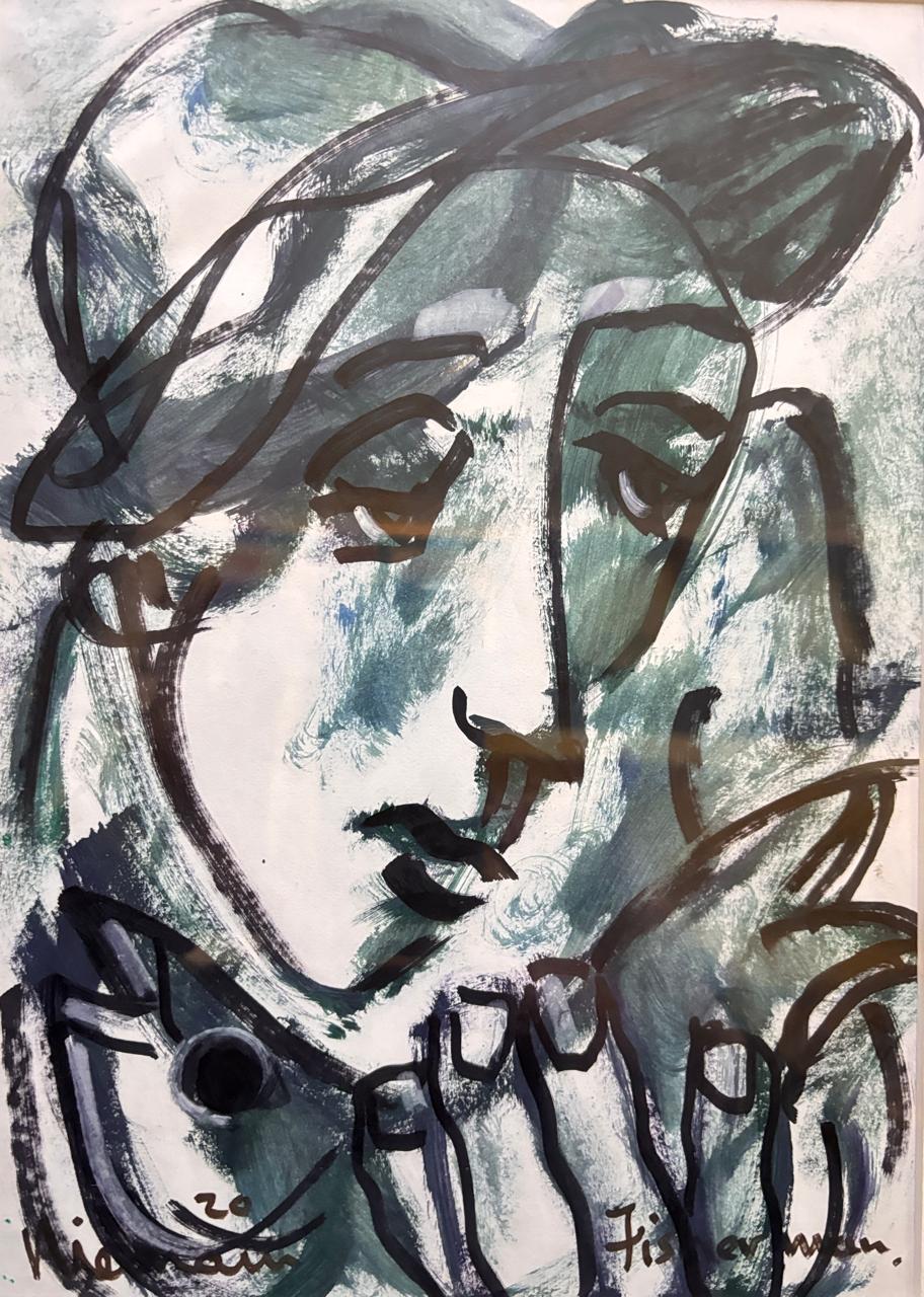Hennie Niemann Snr Intense Old Fisherman Mixed Medium 31 x 23cm