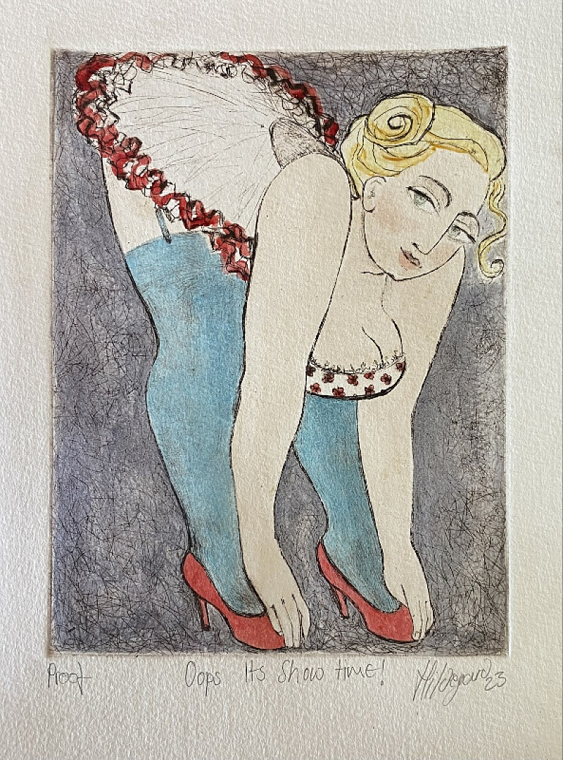 Hildegard van Heerden Oops. It’s Showtime! Etch Painting 180 x 235mm