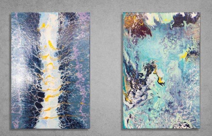 One of Ruder’s notable works is the “Moods of Poseidon Diptych,” an acrylic painting that measures 800 x 600 mm. This captivating diptych painting showcases Ruder’s mastery of colour and form, as she skillfully conveys the enigmatic essence of the sea god Poseidon through abstract expressionism. The painting invites viewers to immerse themselves in the ever-changing moods of the ocean, mirroring the tumultuous and unpredictable nature of human emotions.