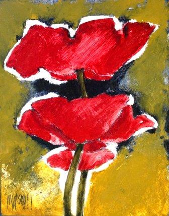 Michael Heyns Dreamy Papawer Rooi En Windblom Wit Oil Painting 42 x 29cm