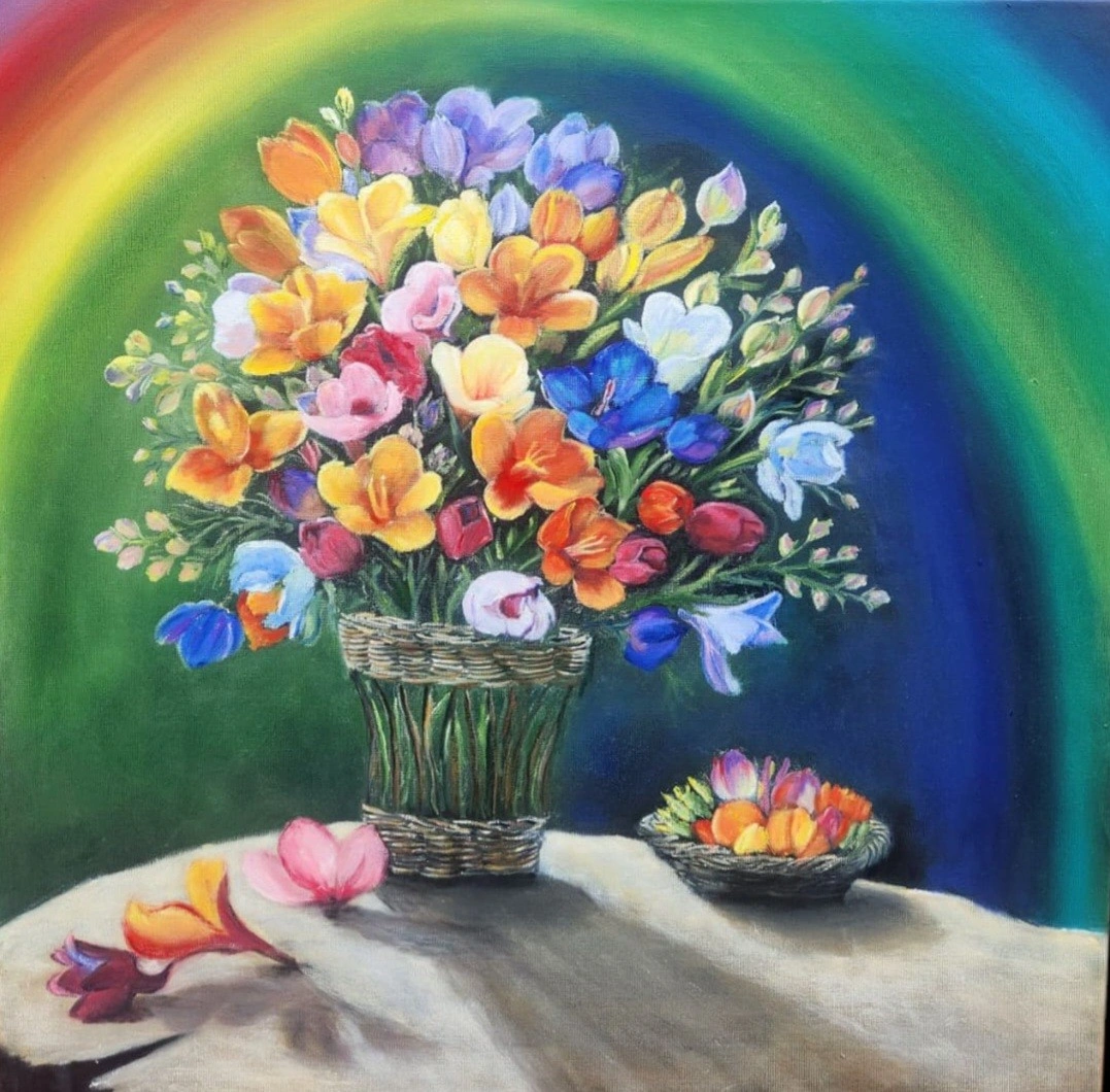Original Oil Painting by Lizelle van Tonder – A Basket or Two of Flowers
