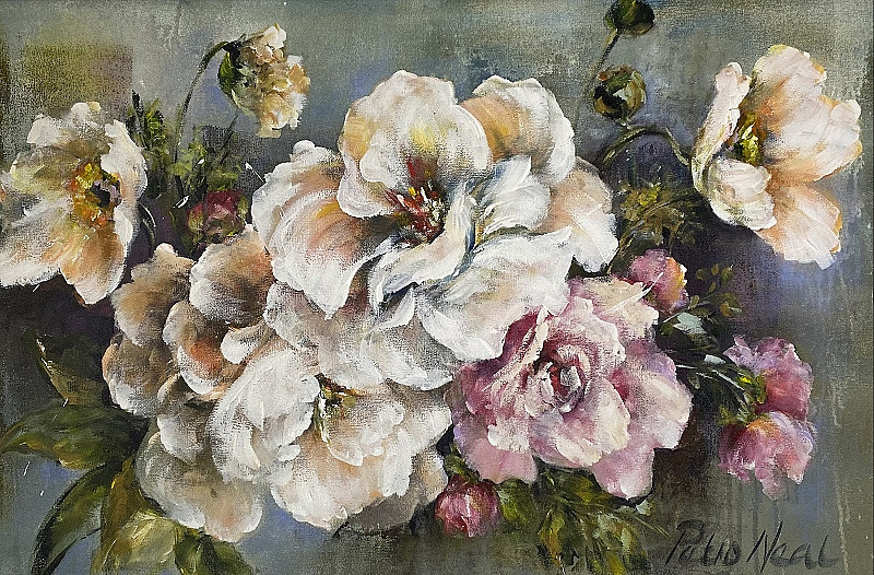 Beautiful drawing done by South African artist Jerry Lion Petro Neal. Petro Neal studied at Pieter Millard Art School, as well as participating in a sculpting course with Charles Gothard and an advanced course in painting with Mimi van der Merwe. She is currently experimenting with Old Masters painting techniques. Petro is an impressionist with a focus on flowers, painted in oils and acrylics. Petro Neal’s work has been offered at auction multiple times.